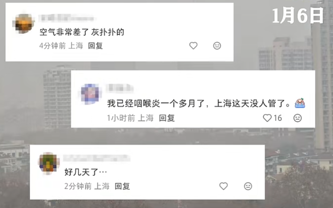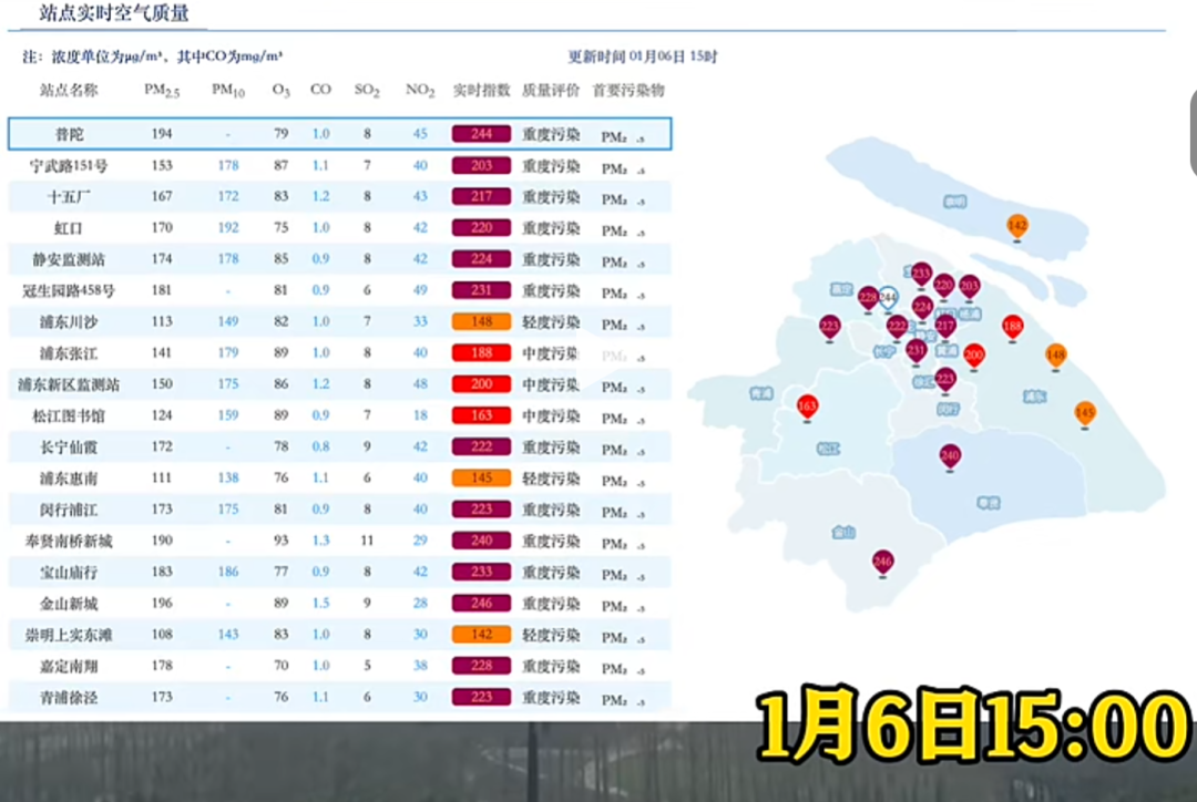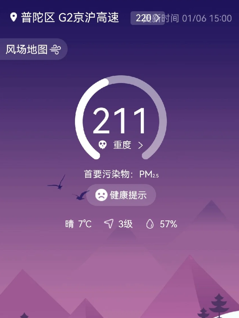 1月6日15:00,上海部分地区空气重度污染,空气质量一片飘紫!